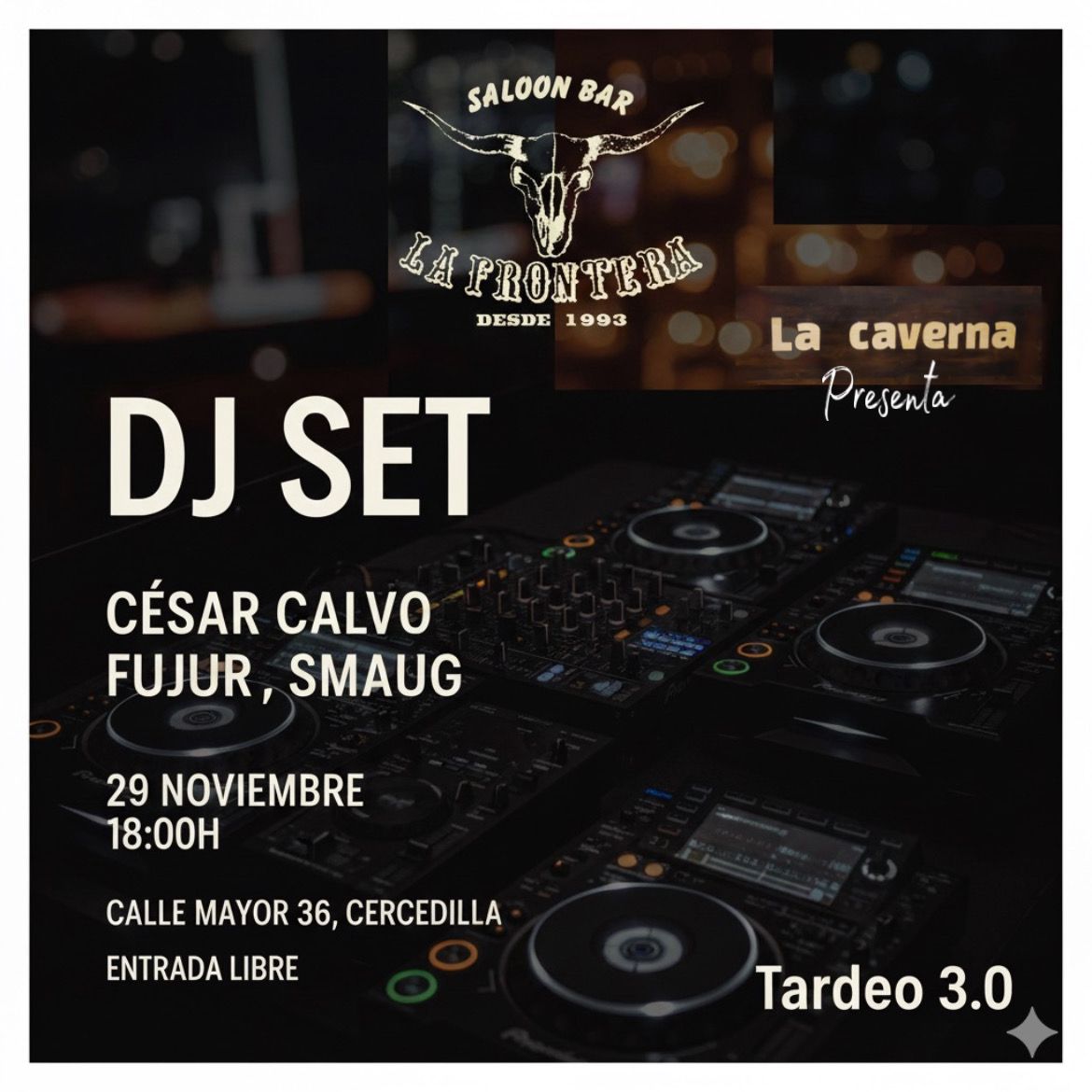 Una nueva edición de DJ Set en La Frontera de Cercedilla con triple sesión a los mandos de César Calvo, Fujur y Smaug. Electrónica, Techno, Hardcore y lo que echen a las brasas para entrar en calor en este tardeo invernal, aprovechando la caída de sol a horas tempranas. Si no eres de los que buscan boquiabierto luces navideñas colgadas de los postes y prefieres otro tipo de plan, allí estaremos.